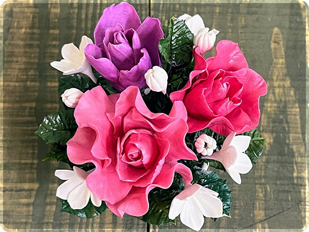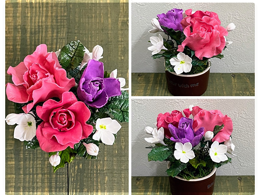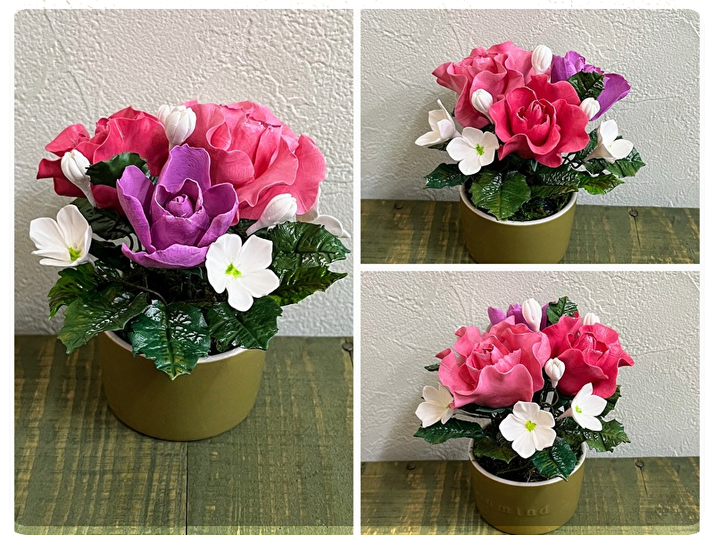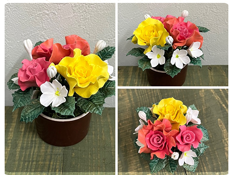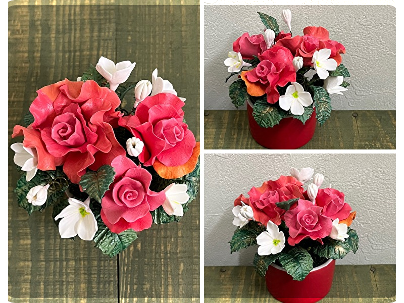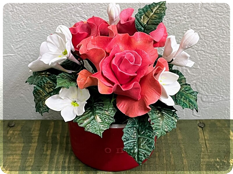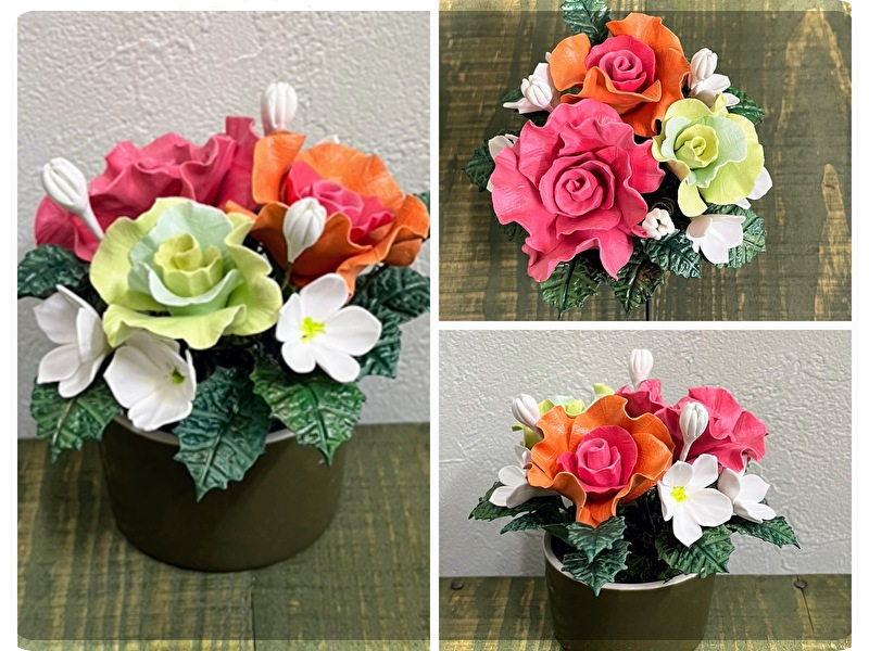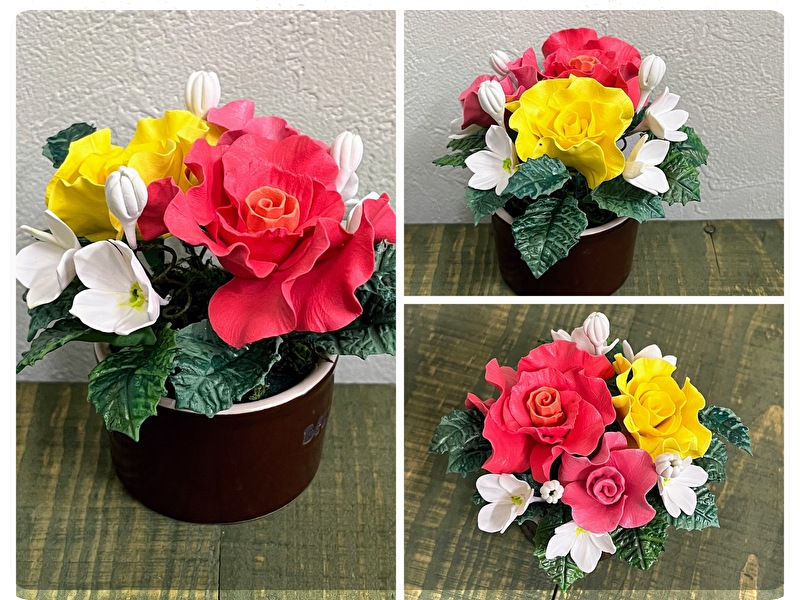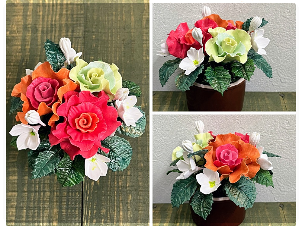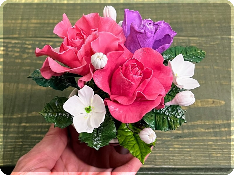 縦12×横11×深さ11 パンフラワー粘土・油絵具 ¥5,000 つやがあり色落ちが少ない長持ちタイプ |